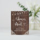 Rustic Wood String Ljus Snöre Möhippa by Mail eller Virtuell Shower-vykort med land chic, rustik lingträ med modern typografi och vintage snöre. Enkel att anpassa med dina egna detaljer så att du fortfarande kan fira även när du inte kan vara tillsammans. Skapat av Cedar och String. Kontakta oss på cedarandstring@gmail.com om du behöver hjälp med designen.