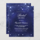 En modern, snyggt, glamorös inbjudan till en Möhippa. En marin blå bakgrund, dekorerad med faux glitter-gnistor. Den blå färg är ojämn. Anpassa och lägg till information om namn och party. 1 lakan = 1 inbjudan tryckt kant till kant.