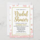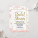Denna moderna blommigt inbjudningskort för möhippan har en rosa blommigt med guldfärgat glitter stänk. Texten skrivs i en blandning av ett lekfullt kalligrafteckensnitt och ett modernt sans-teckensnitt.