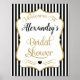 Ett välkomsttecken för elegantens möhippa med svartvit rand och guld glitter med skräddarsydd namn för den brud som ska skänkas. En söt guld-snurrande design med ett hjärta i mitten gör möhippan till ett underbart sätt att presentera gäster i din formella bröllop-möhippa. Fler svarta och guld finns i min butik.
