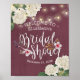 Möhippans välkomstskylt Poster mallar - Elegant Vita vackra vattenfärgsblommor och String Ljus på Burgundy Red Background. En Perfekt för din stora dag! Alla textstorlekar i Stil, Färg kan anpassas efter dina behov.
