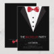 Bjud in dem till möhippan med denna eleganta och stilrena inbjudan med svart smoking och röd fluga.