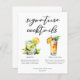 Den här sommarens signaturdrinkmeny har enkel svart typografi ovanför 2 av dina favoritdrycker och deras ingredienser för din kustnära bröllopsbar. En chic Mojito och Piña Colada-illustration lägger till en rolig touch till din barmeny. Komplett med parets namn och datum för deras mottagning.