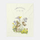Molly Brett Vintage Nature Art. Cute Mor-kanin som pressar henne baby på en sväng hung lila blomsterstammar. Det finns söt gula blommor i trädgården och en liten Ladybug.