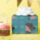 Retro tecknad stil originalillustration av söt lycklig hund med ett ro garland med geometrisk mönstrad bakgrund. Perfekt som är papper för hund och djur älskare för alla tillfälle.