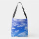 Fluffig vit fördunklar i en ljus blå himmeldesign.