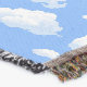 Fluffy white moln på blå himmel sömlös designillustration.