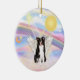 En kollieängel i Gräns flyter i himlens fluffa moln med en lysande sol och stjärna och måne i avstånd