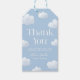 Tacka vänner och familj för att de kom till er baby shower med dessa dammiga blå 'moln nio' tema favorittaggar.
