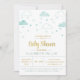 Moln och örhängen Blue och Guld Baby Shower Inbjudningar