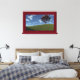 Ett fredligt 3D-landskap i vår eller sommar, skapat i Vue. På ovansidan av ett backe täckt med gräs och färgade priroser i grönt, mot ett blå himmel med molnigheter, står en solitär röd japansk aple med en träbänk under den för att stanna och vila på. En ensam örn blöder vid vinden.
