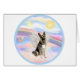 En tysk shepherd-ängel flyter i himlens flytande pastellmoln. Anpassning är tillgänglig via "Anpassningsbar"-knappen.