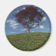Ett fredligt 3D-landskap i vår eller sommar, skapat i Vue. På ovansidan av ett backe täckt med gräs och färgade priroser i grönt, mot ett blå himmel med molnigheter, står en solitär röd japansk aple med en träbänk under den för att stanna och vila på. En ensam örn blöder vid vinden.
