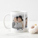 Simple Mom Personalized Classic Coffee Mug. Celebrate motherhood with this minimalist design featuring a 3-photo collage with spots for three different photos and the word “mom” in a lowercase serif font across the bottom right for a warm and playful look. A white band runs along the bottom, where the text overlaps between the white and the photos for a clean, modern touch. A personalized “est. year” can be added to make it special for a mom-to-be, a new mother, or to celebrate mom anytime. Perfect for Mother’s Day or everyday use, this classic coffee mug offers a simple, timeless way to honor mom.
