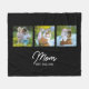 Mom Established Modern Script Black 3 Photo Fleece Blanket. Replace the photos with your own and customize the "EST." date with the years your children were born.