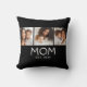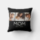 Mom Established Modern Typography Black 3 Photo Design - Give Mom the recognition she deserves with this fun black and white 3-photo throw pillow. The word "MOM" appears in classic white typography on a black background, with the words "EST." ("Established") and the year below. Easily replace the three sample photo with your three favorite mom and baby photos. Edit the text to display one or more birth dates. Other short variants of "mom," such as "mum" or "mama," can be substituted. Makes a great gift for Mother's Day or Mom's birthday!