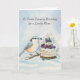 Designed to honor a cherished mom, this January birthday card features a serene winter scene with a Red-breasted Nuthatch adding a gentle touch to a vanilla cake topped with blueberries and raspberries. Hand-painted in watercolor and pen, it offers a thoughtful blend of nature, warmth, and artistic detail for her special day.