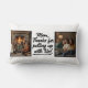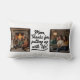 This decorative lumbar pillow features the "Mom, thanks for putting up with us" message in elegant brush script, flanked by two large customizable photo panels. The elongated design provides ample space for both the humorous text and clear, high-quality family photography.