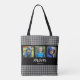 Three-photo collage layout with script “mom” text and editable year. Framed by a soft black gingham border for a classic keepsake look. Add favorite family photos to create a meaningful everyday carry piece that celebrates motherhood and memories.
