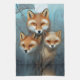 Momma fox och två spädbarn kökshandduk