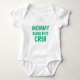 Let everyone know Mommy is boss with this baby onsie with a funny quote "Mommy runs this crib". Features big bold letters and crown that make this design a cute and playful gift for new babies, expecting moms, or just for fun and laughs anywhere you go.