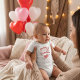 Ideal for Valentine's photoshoots, family gatherings, or everyday cuteness, this bodysuit combines comfort with holiday cheer. Personalize it with your baby's name to make it extra special. Make your baby the heart of the celebration with this adorable baby bodysuit.