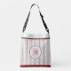 Our Preppy Atomic Age original pattern print has a retro feel in the cool mint and mauvy-pink tones of the mid-20th Century, accented with coordinating deep crimson stripes, polka dots, and golden dijon mid-century-chic "bursts". This crossbody bag is perfect for having your baby or preschooler's essentials at the ready when you're on the go. The front is customizable with your child or baby's (or grandchild's /niece's /nephew's) name, or other custom text. But don't forget you! (Your own monogram letter [the Mommy/Grandma/Aunt's, etc.'s] has its place inside the circle.)