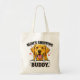 Funny golden retriever holding shopping bags with the text 'Mom's Shopping Buddy'. This relatable and cute design is perfect for dog moms who take their furry friend everywhere. High-quality canvas tote bag ideal for groceries, shopping, or as a fun gift for golden retriever lovers.