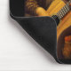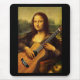 Das Vinci Mona Lisa plockning en akustisk gitarr, med ett barn som tittar på. T-tröja affischer, kort, gåvor.