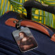 Mona Lisa blåser grått bubbelgum Bagagebricka