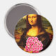 Mona Lisa med Bouquet-Rosa ros Magnet