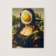 Mona Lisa med ett soligt ägg på ansikte. Det här ska bara vara lustigt, AI-genererad konst, så vandaliserar inte bra konst i verkligheten