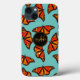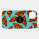 Den här fjärilen mönster iphone case har ett slumpmässigt mönster av färgstarka monarch-butterflugor som i sin klara mörk svarar mot ljusmarkeringar i orange på en anpassade medelljusteal bakgrund - anpassa namn och monogram på en svart cirkelsbeläggning - av katz_d_zynes