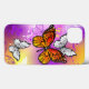Orange, detaljrik monarksmörgås på ljus, lila, bildskärpa, målad bakgrund.
