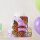 Orange, detaljrik monarksmörgås på ljus, lila, bildskärpa, målad bakgrund.
