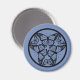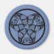Konstruktionsmagneten för konsthantflygets monarch-utskärning ger en cirkelformad magnet. Inspirerad av metall konsskulptur. Svart på muterad blå grått-bakgrund.