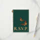 En underbar och enkel OSA kort för grönt i skogen som komplement till bröllop-stationären, oavsett om det är Boho, rustik chic eller modern. Osan vid den djupa grönten förnimmas av två perfekters musselfjärilar och en guld gräns. Den omvända texten har den traditionella ordalydelsen för OSA tillsammans med en praktisk och kostnadsbesparande QR-kod och en mall för webbplatsen bröllop. Tre sätt för dina gäster att svara på din bröllopsinbjudan med lätthet.