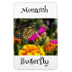 Den vackra Monarch Butterfly! En av Butterflies hjärtan. Berömd för migrationen till säsong. Mellan storlekt, gult med svart rand, vita fläckar. Deras värdväxt är Milkweed-växten. Kvinnorna planterar sina ovala vita ägg på mjölkningen. Män har två svarta fläckar på deras vingar. Den här jag fotograferade, är nyfödd bara tio minuter före detta. Jag planterade henne på en rosa marigold blomma. Drick från nektarväxter. Huvudsakligen deras egen värdväxt, den mjölkade, med rött och gula blommor. Som vattenpelare är de gult svart rand. Njut av det vackra fotot av en nyfödd Monarch Butterfly på Magnets i min butik! Färgfull för kylskåpet! Copyright-foto av Deborah Carr