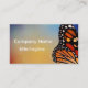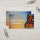 A Monarch butterfly wing nature photograph is featured against a watercolor style ombre background in shades of blue and orange in this business card template available to personalize for any business or profession. Photo art original photography copyright Ann Powell all rights reserved