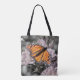 Monarch Butterfly på Mute Rosa och Grått Flowers Tygkasse