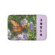 Denna vackra orange monarch-fjäril tar lite tid att vila på blek lila blommor. Den ljusa orangen står emot blommorna i det här fotot. Snabbt och enkelt anpassa namn eller lägga till ytterligare text. Den solida lila färg bakom texten kan också ändras om ni så önskar.