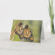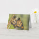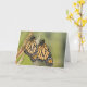 Två Monarch Butterfly-vänner har ett tomt hälsningskort. Bild av två nyfödda monarch Butterflies som torkar sitt vingar. Underbart kort för vänner som kärlek fjärilar.