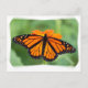 En vacker monarch-fjäril med vingar-spridning har landat på en tithonia-blommar. Bakgrunden till den mjuka grönten gör bilden "popup".
