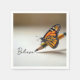 A vibrant monarch butterfly gracefully resting on a pencil, magically suspended above a blank sheet of paper, ready to inspire creativity and ideas.