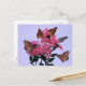 Monarch-butterflugor på små blommar av rosa på blå baksida