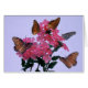 Monarkfjärilar på lilla rosor blomstrar på en blåttbackround