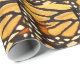Detta slående in papper presenterar ett abstrakt mönster av en älskvärd vinge för monarkfjäril (Danausplexippus) i färger av orangen, gult, guld, svarten, bruntet och vit.