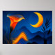 Auf der rechten Seite strahlt ein großer Halbmond in warmen Orange- und Gelbtönen und verleiht der Szene eine himmlische Präsenz.