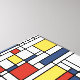 Neoplasticiskonst med svart fet linjer och röd, gult och blå fyrkanter och rektanglar.