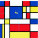 Mondrian inspirerade geometrisk designabstraktkonst i blått, rött och gult. Du kan personifiera den med din egna Monogram
